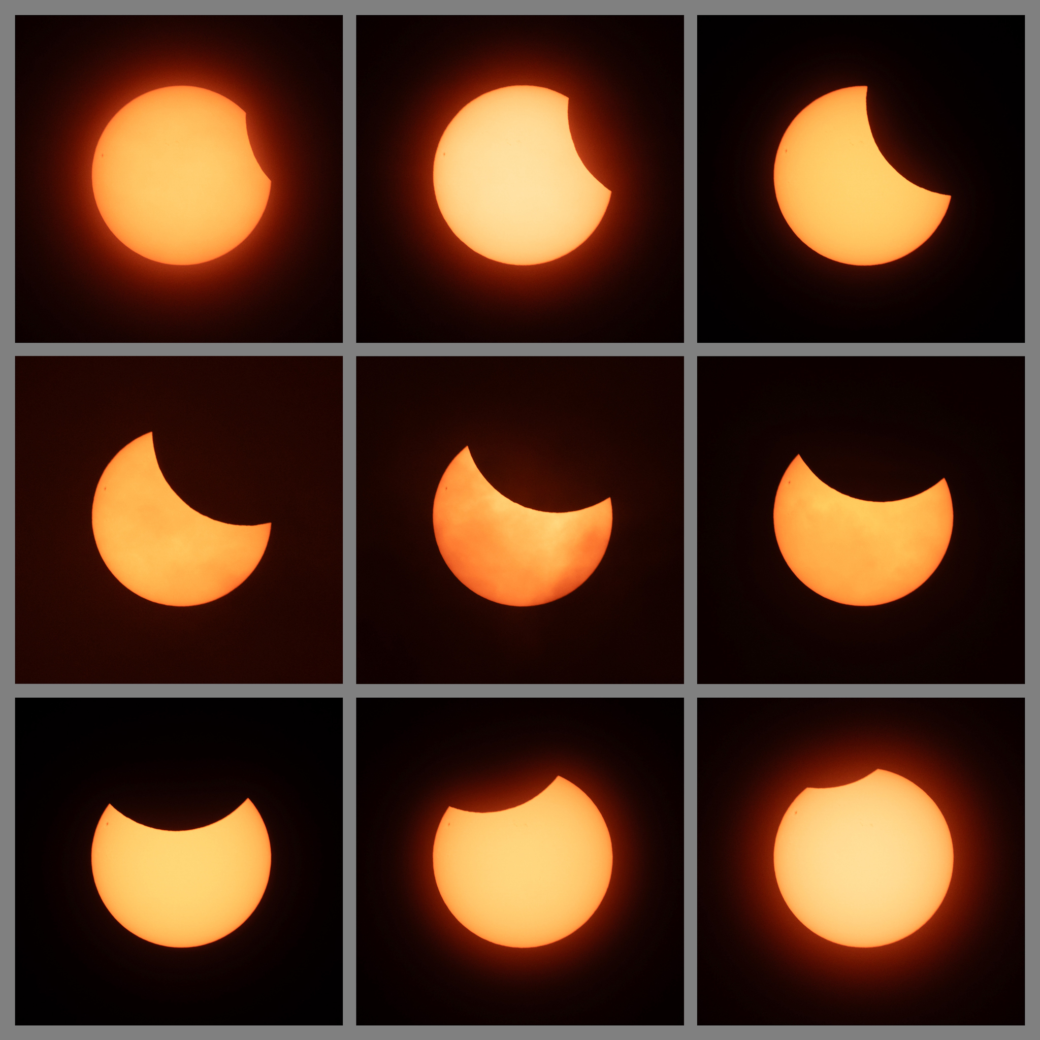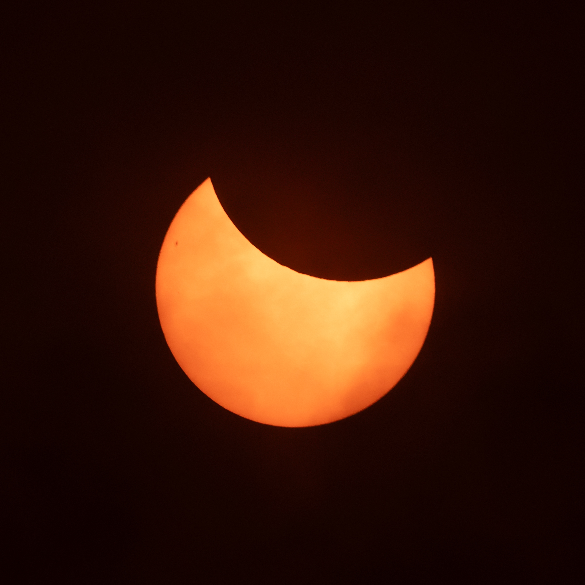 A large sunspot group is visible on the left-hand side of the Sun, and thin cloud briefly passed across the Sun shortly before maximum eclipse.